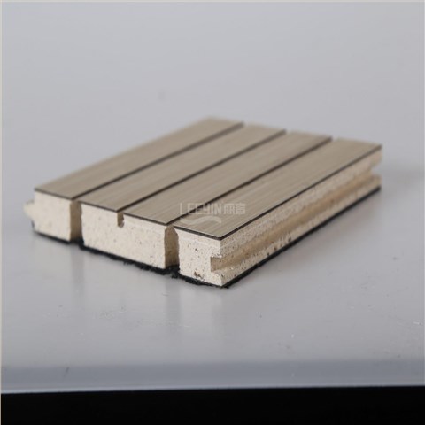 槽木吸音板是表面开长条的坑槽,背面穿圆孔的吸音板。背部用不燃吸音黑纸覆盖,有效防止内部吸音材料裸露。槽木吸音板的规格型号非常丰富,可根据不同的内装风格和整体效果选用不同的型号规格满足要求。这类型的吸音板可以大规模应用在礼堂、会议室、多功能厅、机场等空间。